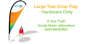 The Large Tear Drop Flag is 5.5 meters in height and can be purchased separately as hardware, or single-sided graphics only (fl-tdlrgg) or double-sided graphics only (fl-tdlrgg2). This product can also be purchased as both graphics and hardware (single-side fl-tdlrgkt, double-side fl-tdlrgkt2).
