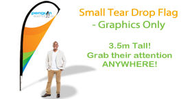 This product is graphics for the Small Tear Drop Flag one side (see product fl-tdsmh). This product is tension fabric dyesublimation graphics.