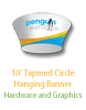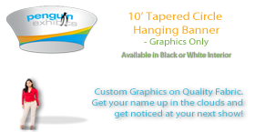 This product is graphics for the 10ft Tapered Circle Cloud Cover Hanging Sign with a black interior (product cc-tch). This product is constructed with an aluminum frame, bungee cord and push clip connectors with tensioned fabric dyesublimation graphics.