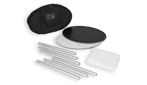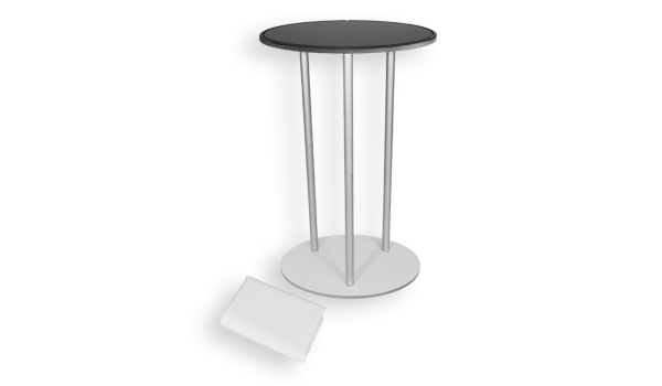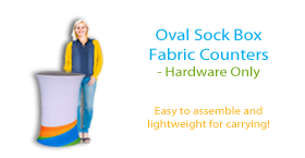 The Oval Sock Box fabric counter is a sleek, simple and compact design that is ideal for exhibition use or store-front reception. The pole support panel stretches the fabric screen and connects the upper and lower panels to form the counter complete with an attractive black countertop. This lightweight product weighs no more than 18 lbs (43"h X 21"w). This product is constructed with an aluminum frame, wooden tops and bases and tensioned fabric dyesublimation graphics.