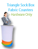This product is graphics for the Triangle Sock Box Fabric Counter (product sb-trih). This product is constructed with an aluminum frame, wooden tops and bases and tensioned fabric dyesublimation graphics.