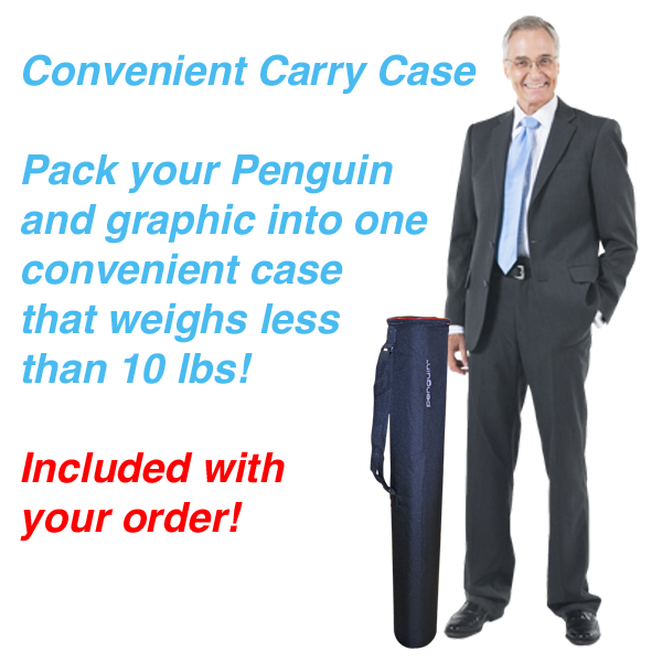 Our Standard Full Graphic Penguin 90 is perfect for trade shows, exhibitions, store openings, specials or any event that needs a bold statement. The Standard Full Graphic Penguin is 86.25” high and is available in 4 widths from 23.6" to 39.4". Each unit includes a convenient, compact transport case.