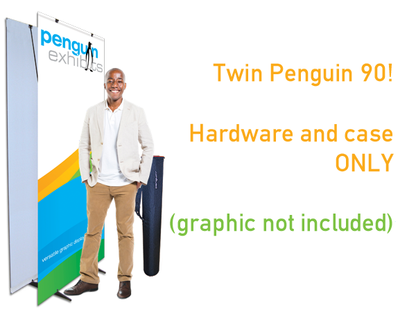 Our Standard Full Graphic Twin Penguin 90 (Hardware only) is perfect for trade shows, exhibitions, store openings, specials or any event that needs a bold statement. The Standard Full Graphic Twin Penguin is 86.25” high and is available in 4 widths from 23.6" to 39.4". Each unit includes a convenient, compact transport case.